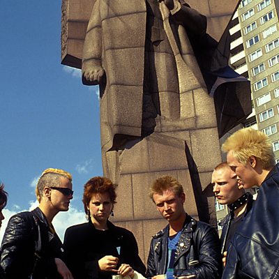 In the early 1980s, thousands of young people in communist East German became punks, attracted by the DIY culture and anti-establishment attitude. But the East German secret police the Stasi believed the subculture represented an existential threat to the state and tried to crush the movement. Lucy Burns speaks to former punk Jürgen Gutjahr, aka Chaos, and Tim Mohr, author of "Burning Down The Haus: Punk Rock, Revolution and the Fall of the Berlin Wall." Photo: Young punks posing in Lenin Square (now United Nations Square), East Berlin. 1982. (Credit: Photo12/Universal Images Group via Getty Images)