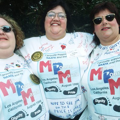 The National Association to Aid Fat Americans, NAAFA, held its first meeting in June 1969. Its first president was Bill Fabrey, a thin man married to an overweight woman who had realised how difficult life was for fat people in the USA. One of NAAFA's first members Sue Morgan, and Bill Fabrey, have been speaking to Lucy Burns about the early days of fat acceptance. Photo: Participants in the Million Pound March, 1998 in Santa Monica, California. Sponsored by NAAFA. (Credit: Gilles Mingasson/Liaison/Getty Images)
