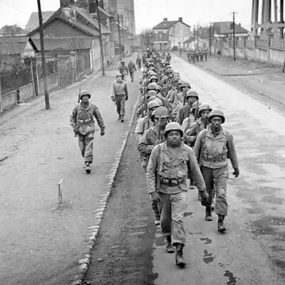 For much of World War Two African-American soldiers were relegated to support roles and kept away from the fighting. But after the Allies suffered huge losses during the Battle of the Bulge, they were called on to volunteer for combat. Janet Ball has been speaking Reverend Matthew Southall Brown who saw action in Europe towards the end of the war. He fought in the US Army's 9th Division, 60th Regiment, Company E. Photograph:Volunteer combat soldiers from the 9th Division prepare for shipment to front lines in Germany. Credit: US Government Archives.
