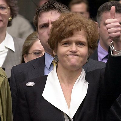 The controversial historian, David Irving, tried to sue Penguin Books and professor Deborah Lipstadt for libel after she called him a Holocaust denier in one of her books. The case drew intense media interest. Deborah Lipstadt told Rebecca Kesby what it was like to have to defend her work and the memories of survivors of the Holocaust at the High Court in London in 2000. History was on trial. (Photo: American academic Deborah Lipstadt (C) exults 11 April 2000 at the High Court in London after winning a libel case brought against her and Penguin publications by British revisionist historian David Irving. Credit: Martyn Hayhow/AFP/Getty Images)