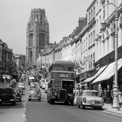 In 1963 a small group of British black activists started a pioneering protest against racism within the local bus company in Bristol. It had specified that it did not want to employ black bus drivers. Inspired by the example of the US Civil Rights Movement the boycott ended in victory and led to the passage of Britain's first anti-discrimination laws. Paul Stephenson and Roy Hackett spoke to Louise Hidalgo in 2013 about their part in the protest. Photo: Park Street in Bristol in the early 1960s. (Credit: Fox Photos/Getty Images)