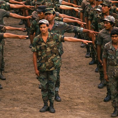 In the 1980s thousands of young activists from around the world flocked to Nicaragua to support the fledgling left-wing Sandinista revolution. They came to build houses, pick coffee, or work in local health centres. Some of the foreigners were caught in the middle of the ongoing civil war between the Sandinista government and right-wing rebels, or Contras, supported by the US government. Mike Lanchin has been speaking to two Germans who were kidnapped by the Contras in the summer of 1986 and held in the jungle for 25 days. Photo: Anti-Sandinista Contras practice military drills and exercises at military bases in Honduras (Getty Images)