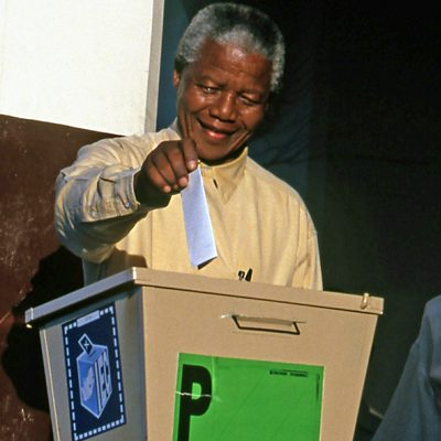 After Apartheid all South Africans, regardless of race, were finally able to vote for the first time in April 1994. Organising the elections was a huge logistical challenge, white supremacists staged terror attacks to try to sabotage the vote and violent clashes between rival political groups threatened to disrupt voting day. Rev Frank Chikane was on the Independent Electoral Commission, the body charged with running the elections, and he explained to Rebecca Kesby how much stress, and joy there was the day all South Africans finally got democracy. (Photo: Nelson Mandela, leader of the ANC (African National Congress) and presidential candidate, voting in the 1994 general election in South Africa. Copyright: BBC)