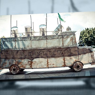 "Battle Bus" was a sculpture made by Sokari Douglas Camp in memory of Nigerian environmentalist Ken Saro Wiwa and eight other activists who were controversially executed in 1995. The sculpture was seized and impounded by Nigerian port authorities in 2015 when the art work was shipped to Nigeria. Sokari Douglas Camp talks to Rebecca Kesby about growing up in the Niger Delta and how it's shaped her art work. PHOTO: "Battle Bus" by Sokari Douglas Camp on show in London in 2015 (Sam Roberts Photography).