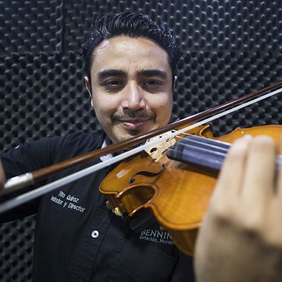 Tito Quiroz used to wave up at the inmates of the prison next door to his university in Ensenada, Mexico, and they'd wave back from their cell windows. Then, one day, he got the opportunity to go inside to teach them his passion, the violin. Tito endured the somewhat intimidating atmosphere inside, and found an audience desperate to learn. One man in particular would use the music he was imbued with to turn his life around. Image: Tito Quiroz Credit: Clayton Conn