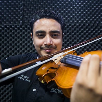 Tito Quiroz used to wave up at the inmates of the prison next door to his university in Ensenada, Mexico, and they'd wave back from their cell windows. Then, one day, he got the opportunity to go inside to teach them his passion, the violin. Tito endured the somewhat intimidating atmosphere inside, and found an audience desperate to learn. One man in particular would use the music he was imbued with to turn his life around. Image: Tito Quiroz Credit: Clayton Conn
