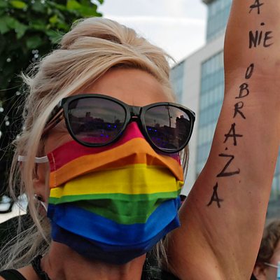 A number of small towns in Poland have been campaigning against what they call 'homosexual ideology'. Local authorities in the provinces have passed resolutions against perceived threats such as sex education and gay rights. LGBT activists complain that they are stoking homophobia and effectively declaring ‘gay-free zones’. Both sides argue that they are protecting the universal values of free speech and justice. But the row has attracted international condemnation. The European Union has withheld funds to six of the towns involved, and some of their twinning partners in Europe have broken off ties. Meanwhile, politicians within Poland’s conservative ruling coalition stand accused of exploiting the divisions to further a reactionary social agenda. Presenter: Lucy Ash Producer: Mike Gallagher (Image: A woman wears a rainbow face mask at a pro-LGBT demonstration in Poland. Credit: European Photopress Agency/Andrzej Grygiel Poland Out)