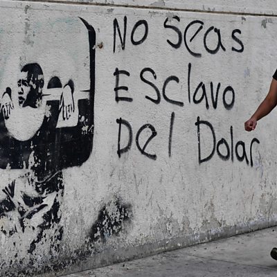 A third of Venezuela's population is at risk of malnutrition, according to the UN and the latest gasoline crisis could weaken the country's economy further. Entire villages are said to have been cut off from food supplies because trucks can't get fuel to deliver to them. That’s the context a crisis which has made Venezuela the world’s weakest emerging economy, according to a recent review by the Economist magazine. Earlier this month the situation became even more volatile when two Americans were caught apparently trying to launch a coup attempt against the government. We hear from Adam Tooze, a professor of history at Columbia University and we get the views of Venezuelan opposition politician Manuela Bolivar. (Picture of a woman wearing a face mask walking next to graffiti reading Don't be a slave of the dollar in Caracas, photo by Federico Parra via Getty Images).