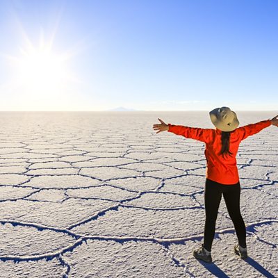 The Salar de Uyuni is a stunning pristine salt flat high in the Andes - it is also the world's biggest lithium deposit, worth many billions of dollars. Ed Butler asks whether this as yet untapped resource will prove a blessing or a curse for the people of Bolivia. It has already played a role in the political instability that brought down the country's long-time socialist president, Evo Morales, last year. Daniela Sanchez-Lopez, an expert in the geopolitics of clean energy at Cambridge University and herself Bolivian, explains how the exploding demand for lithium batteries for electric vehicles and renewable energy storage, means that many powerful nations have their eyes on the salt flat. Among them is Germany. Ed speaks to Wolfgang Schmutz, founder of ACI Group, the clean energy company that had won a contract to develop the lithium deposit, before being dumped during the political unrest last year. We also hear from Gunnar Valda, head of the Bolivian state lithium company YLB. Producer: Laurence Knight (Picture: Woman standing on the Salar de Uyuni; Credit: hadynyah/Getty Images)
