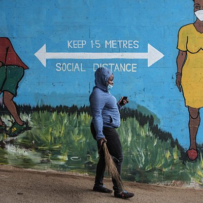 In the sprawling Nairobi slum of Kibera in Kenya, a single mother of four struggles to survive lockdown. At the beginning of the pandemic, Josephine was working as a cook, but soon lost her job, and when the BBC's Ed Butler spoke to her a year ago her situation was dire. In this episode, the second of a short series, the small business Josephine started to help feed her family sees faltering success before life in a pandemic gets more complicated again. Also in the programme, we hear from Kibera radio journalist Henix Obuchunju, reacting at the time to the confusion and suspicion of early lockdown measures in Kenya. And Dr John Nkengasong, head of the Africa Centres for Disease Control and Prevention, looks back and reflects on how those early measures played out. Producer: Frey Lindsay (Image: A woman with a face mask walks past graffiti that promotes social distancing, to curb the spread of the COVID-19 coronavirus, in Kibera, Nairobi, on July 15, 2020. Image credit: YASUYOSHI CHIBA/AFP via Getty Images)