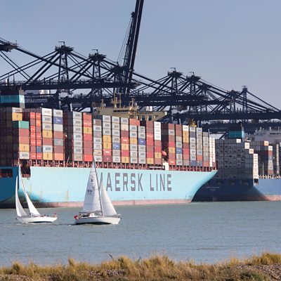 How the shipping industry has fared in 2020. Ed Butler speaks to Lars Jensen from SeaIntelligence Consulting about the ups and downs of the shipping industry during the pandemic, in a year that has seen a collapse in economic activity, but a boom in online shopping. And Bridget Rosewell, commissioner for the independent National Infrastructure Commission in the UK, explains why disruption to supply chains could cause businesses to rethink the way they ship goods around the world. (Photo: A cargo ship is unloaded at the UK port of Felixstowe, Credit: Getty Images)