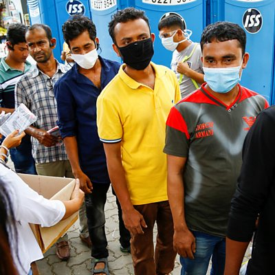 Stories from Singapore, Belarus, Chile… and a remote region of Myanmar. Singapore’s strategy of testing, thorough contact tracing and strict stay-at-home quarantines was praised as a global gold standard. But since then, Singapore has seen a surge in coronavirus cases. In particular the virus has spread among the city state’s hidden army of migrant workers who live in cramped living conditions. The government has extended its partial lockdown by another month. Karishma Vaswani reports on where Singapore’s strategy went wrong. It’s been more than three decades since the world’s worst nuclear accident at the Chernobyl power plant in Ukraine, then part of the Soviet Union. But although the reactor was in Ukraine – much of the radioactive fall-out was deposited in Belarus. The most toxic area is now a wilderness, and highly protected. No one lives there. A few scientists work in two-week shifts to keep their radiation levels down. Monica Whitlock went to visit a research station deep in the forest. Ever since the social unrest first flared up at the end of October in Chile’s capital Santiago, there have been protests, particularly in Plaza Italia – a big square - in the city centre. But now, because of the lockdown restrictions the demonstrators have disappeared – bar a brief stand off earlier this week. The city has fallen quiet – so much so that pumas have been sighted wandering the streets of the capital at night. Jane Chambers caught up with the protestors who remain housebound. In Myanmar, many newly-qualified teachers get posted to the most remote villages to start their careers .Myanmar has 135 ethnic groups, one of which is the Naga people. They live very isolated lives in the Naga Self-Administered Zone, which borders the furthest north-eastern corner of India. Antonia Bolingbroke-Kent met a teacher in one of Myanmar’s least accessible settlements. (Image: Migrant workers, mostly from Bangladesh, queue to collect free masks and get their temperatures taken in Singapore. Credit: Reuters/Feline Lim)