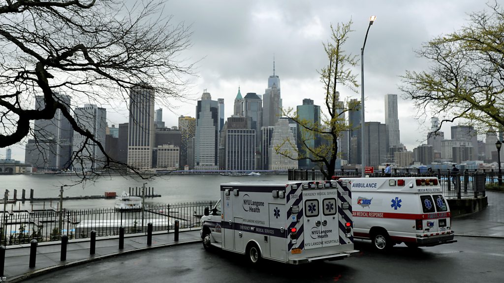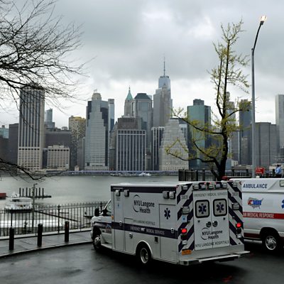 Stories from New York, Jordan and Bangladesh. As New York begins to re-open after six weeks in lockdown, the state’s governor remarked that New Yorkers had been to hell and back. More than 159,000 have been infected with Covid-19 in New York City alone, and there have been at least 12,000 confirmed deaths due to the virus. The sound of ambulance sirens has replaced the bustle of Times Square and makeshift morgues have been set up in Brooklyn. The City which endured the horror of the 9/11 terror attacks and the economic downturn of the financial crash has now been battered by the virulent spread of Covid-19. Nick Bryant has felt the impact on the city and on his own personal life as he prepares for the birth of his child. According to the UN, at least 15m more cases of domestic violence are predicted around the world this year as a result of pandemic restrictions. And they expect a further 15m for every three months that the lockdown is extended. Women’s rights groups across the Middle East say there has been a surge in reports of domestic abuse cases. In Lebanon, calls to a government domestic violence hotline have doubled. In Tunisia, authorities say cases have increased five-fold. In Jordan, a video of a woman issuing a tearful cry for help one month ago went viral. Charlie Faulkner has the story. Seven years ago, the Rana Plaza factory in Bangladesh collapsed in less than 90 seconds killing 1,134 people and laying bare the working conditions of thousands of garment workers. The incident sparked outrage and retailers – many of them western brands – were forced to act to improve safety standards. Conditions improved, but now the garment workers face another threat: Covid-19. Many retailers are cancelling orders or faced with travel restrictions. Bangladesh is the top garment exporter in the world after China and is heavily reliant on European and American orders. The sector employs more than 4 million workers – mainly women. They are once again fearful for their future and their livelihoods, finds Christine Stewart. Caption: (Image: Ambulances parked with the Manhattan skyline in the background during the coronavirus outbreak in New York, U.S. Credit: Reuters/Andrew Kelly)