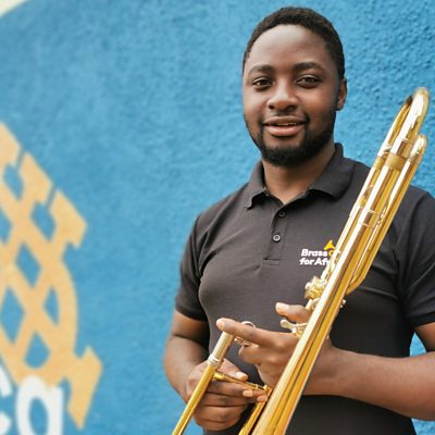 Ronald Kabuye grew up in the Katwe slums of Kampala, Uganda, scavenging for food and trying to sell scrap metal for cash. One day in the street he saw a performance by the M-Lisada marching band, a group made up of children from a local orphanage. Ronald was enthralled. He joined the band, took up the trombone, and learned to read music. Performing gave him an escape and ultimately the opportunity to travel the world and play with some of the world's most influential musicians. Ronald is now a music teacher for the charity Brass for Africa. One of his pupils is Sumayya Nabakooza, who has overcome tough opposition to become one of very few female tuba players in Africa. They both share their story with Outlook's Anu Anand. Picture: Ronald Kabuye Credit: Brass For Africa