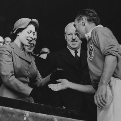 In 1953, Blackpool won one of the most famous FA Cup finals of all time when they came back to beat Bolton 4-3 in extra time. The Blackpool victory was engineered by the legendary Sir Stanley Matthews and later became known as the "Matthews Final". In 2013, Simon Watts spoke to the former Blackpool players Cyril Robinson and Jimmy Armfield. Cyril Robinson died in 2019 and Jimmy Armfield in 2018. PHOTO: Sir Stanley Matthews receiving his winner's medal from the Queen (Getty Images)