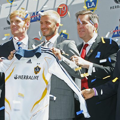 In July 2007, David Beckham, then one of the most famous footballers in the world, made his debut for Major League Soccer team, LA Galaxy. The star-studded game attracted Hollywood royalty and huge media attention from around the world. Beckham would eventually win two MLS titles with LA Galaxy and he’s credited with raising the profile of his sport in America. Ian Williams talks to the man who signed Beckham, LA Galaxy president Alexi Lalas. PHOTO: David Beckham's presentation for LA Galaxy in 2007 (Getty Images)