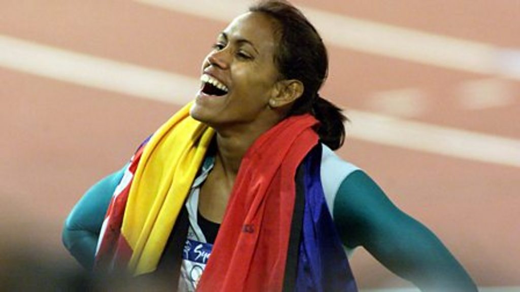 In 2000, the aboriginal runner, Cathy Freeman, became the star of the Olympic Games in Sydney. After being given the honour of lighting the Olympic cauldron, she was under huge pressure to win the 400 metres in front of her home crowd. Freeman delivered in style - and went on an emotional victory lap parading both the aboriginal and Australian flags. Presented by Simon Watts Picture: Cathy Freeman celebrating her 400m victory in 2000, Credit: Getty Images