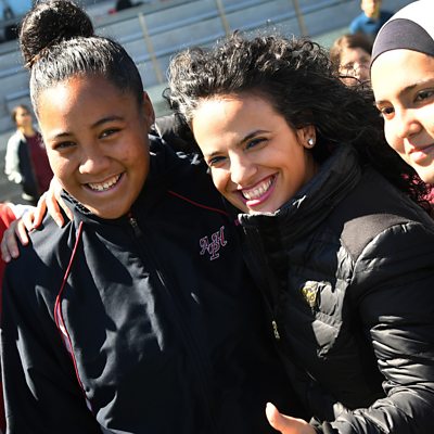 To mark International Women’s Day, Sporting Witness has the story of the founding of the Palestinian women’s football team, who played their first international match in 2005. Many of the players had to overcome hostility from male relatives, as well as the difficulties of day-to-day survival in the occupied West Bank. The Palestinian captain, Honey Thaljieh, talks to Charlotte North about how she found a sense of liberation through sport. PHOTO: Honey Thaljieh, second right, on a visit to Australia in 2017 (Getty Images)