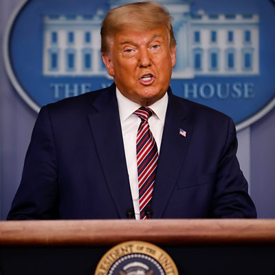 Facebook and Twitter warn President Trump’s post-election remarks may be misleading. Plus, what a verbal battle between chatbots tells us about machine learning. And the plan to beam 5G connectivity from hydrogen-powered drones. Presented by Rory Cellan-Jones, with BBC reporters Jane Wakefield and Marianna Spring. Produced by Jat Gill. (Image: U.S. President Donald Trump speaks to reporters about the 2020 presidential election at the White House in Washington DC, Credit: Carlos Barria/ Reuters).
