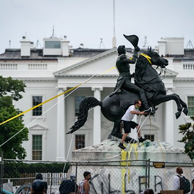 The killing of African American George Floyd ignited anti-racist protests around the world - many centred on statues associated with colonialism and slavery. Why do these figures of bronze and stone generate such strong feelings? And what do they tell us about how countries deal with their past? Contributors: Sarah Beetham Chair of Liberal Arts at the Pennsylvania Academy in the Fine Arts. Ghaith Abdul-Ahad journalist for The Guardian newspaper. AGK Menon, architect, urban planner and founder of the Indian National Trust for Art and Cultural Heritage. Daniel Libeskind, architect. Presenter: Kavita Puri (Protesters attempt to pull down the statue of Andrew Jackson near the White House June 22, 2020 in Washington, DC. Credit: Drew Angerer/Getty Images)