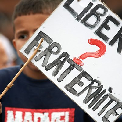 The French brand of secularism - laïcité - is central to the country’s national identity. It requires that public spaces – whether state classrooms, workplaces or ministries - be free of religion. But the way the French government is applying the concept has come under fresh criticism. Many French Muslims claiming this cornerstone of French identity is now being used as a weapon against them. This week, Tanya Beckett asks has French secularism gone too far? A boy holds a sign asking 'Liberty, fraternity?' at a gathering in Toulouse, France. Credit: Alain Pitton/Getty Images)