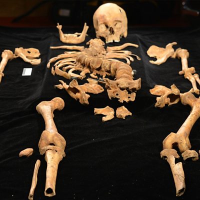 In 2012, archaeologists from the University of Leicester discovered the lost grave of Richard III under a car park in Leicester. Richard was the King of England more than 500 years ago and for centuries was portrayed as one of the great villains of English history. He was killed in 1485 leading his army in battle against a rival claimant to the throne, Henry Tudor. After the battle, Richard III corpse was stripped naked, paraded around down, before being hastily buried in a church within a friary in Leicester, which was later demolished. Alex Last spoke to Dr Richard Buckley who led the archaeological project to find the remains. Photo: Remains of King Richard III being studied at The University of Leicester (BBC)