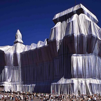 The artist Christo died on May 31st 2020. Famous for wrapping landmarks in fabric and plastic, one of his most ambitious projects was the former German parliament building which sat on the border between East and West Berlin. It had been gutted by fire in 1933 and extensively damaged during the Second World War. In June 1995 Christo and his wife Jeanne-Claude completed the monumental public art project which was seen by more than five million people and became a symbol for Berlin’s renewal after the collapse of communism and the reunification of Germany. Christo spoke to Lucy Burns in 2019. This programme is a rebroadcast. Picture: view of west and south facades of Wrapped Reichstag, Berlin 1971-1995 by Christo and Jeanne-Claude. Photo by Wolfgang Volz, copyright Christo.