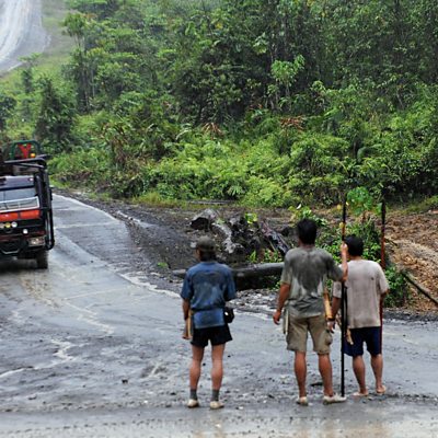 The rainforests of Sarawak in Malaysia on the island of Borneo are some of the richest and most biodiverse ecosystems on earth - but for decades they've been under threat from commercial logging, permitted by the Malaysian government. In the 1980s, local people from the Penan and Kelabit ethnic groups began to fight back against the logging, setting up blockades and appealing to international environmental groups for support. Their campaign would make headlines around the world. Lucy Burns speaks to activist Mutang Urud, who helped organise the blockades and later went on a world tour to attract attention to their cause. PICTURE: Tribespeople with spears block the road as plantation company vehicles approach a blockade in Long Nen in Malaysia's Sarawak State in August 2009. (AFP photo/Saeed Khan via Getty Images)
