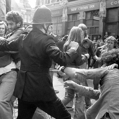 In August 1977, the racist National Front organisation planned to stage a march into Lewisham in South London at a time of high racial tension in the area. The National Front activists were met by a huge counter-demonstration organised by anti-racist campaigners – in the clashes that followed, hundreds of people were arrested and injured before the National Front were forced to withdraw. The so-called Battle of Lewisham is now seen as having halted the rise of the far-right in British politics. Nacheal Catnott talks to Lez Henry, who grew up in Lewisham and witnessed the unrest. Produced by Eleanor Biggs. PHOTO: A police officer attempts to restore order in Lewisham in 1977 (Getty Images)