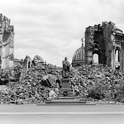 In 2005 Dresden’s Lutheran church, the Frauenkirche, opened its doors to the public for the first time in 60 years. The Frauenkirche in the East German city of Dresden was destroyed in 1945 by British and American bombing. The church remained in ruins for over 40 years. Then, in 1993, a painstaking project began to piece the church back together and restore it to its former glory. Josephine Casserly talks to Thomas Gottschlich who was one of the architects leading the reconstruction. Ruins of the Frauenkirche in Dresden, Germany after the WWII bombing in 1945. Credit: Probst/Ullstein Bild via Getty Images