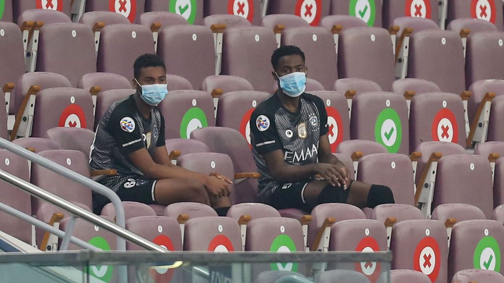 Al Hilal coach Răzvan Lucescu expresses his anger following his team's expulsion from the AFC Champions League. Al Hilal were unable to field a team after Covid-19 swept through the squad. Picture: Al Hilal's players are pictured ahead of the AFC Champions League match against UAE's Shabab Al-Ahli. The match was called off after the Saudi team failed to field the minimum required 13 players. (KARIM JAAFAR/AFP via Getty Images)