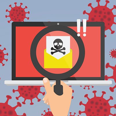 Where some see a crisis, others see an opportunity… For the past few weeks, hackers and scammers around the world have been busy using the confusion and anxiety created by coronavirus as cover for dangerous and illegal activities. From phishing emails to bogus cures and treatments, their scams have taken a number of different forms. BBC Trending turns the spotlight on the darkest corners of the web and analyses some of the scams and hacks that have emerged since the coronavirus outbreak began. Presenter: Marco Silva (Photo: illustration of a magnifying glass hovering over a laptop that has received malicious content/Credits: BBC)