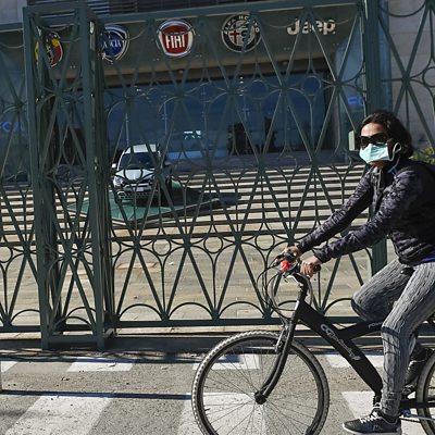 With much of the world’s population staying indoors, there are fewer cars on the roads, planes in the skies and workplaces and factories open. Will this have an impact on climate change? Plus as the streets become quieter, is it just us, or have the birds begun to sing much more loudly? (A woman wearing a respiratory mask rides a bicycle past a closed factory where Fiat, Jeep and Alfa Romeo cars are built in Turin, Italy. Credit: Nicolò Campo/Getty Images)