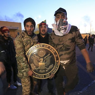 On 3 January 2020 Qasem Soleimani – Iran’s top military commander - was killed in a US drone attack in Baghdad. The so-called architect of Iran’s foreign policy in the Middle East, Soleimani was responsible for Iran’s political, economic and military involvement in Iraq, Syria, Yemen and Lebanon. And in all those places he oversaw a growth of Iranian power. Despite many Iranians demanding vengeance for Soleimani’s death, Tehran’s response was muted – rather than launch major attacks on US targets, it chose instead to use Soleimani’s death to build support in Iraq for the ejection of the US’s remaining 5,000 troops from the country. For Washington, it was not supposed to play out like this. When the United States invaded Iraq in 2003 to oust Saddam Hussein, President Bush said he wanted to create a beacon of democracy in the Middle East and keep Iran – at loggerheads with the US for decades and part of his axis of evil – in check. But America underestimated the supposedly irrational regime in Iran which used proxy militias to frustrate the US forces in Iraq. After billions of US dollars were spent and thousands of American lives lost, it is Iran that now has most influence in Iraq. Owen Bennett Jones goes back to 1988 when Iran was forced to accept a UN-brokered ceasefire in its bitter eight-year war with Iraq. He charts the complex interplay between Baghdad, Tehran and Washington ever since. Even opponents of the Iranian regime described Qasem Soleimani as a giant who had helped defend and advance Iranian national interests and as someone who took on the greatest power on earth – and seems to have outwitted it. Photo: Iraqi protesters pose with a US Embassy plaque as they storm the US Embassy in Baghdad, protesting Washington's attacks on armed battalions belong to Iranian-backed Hashd al-Shaabi forces. Credit: Murtadha Sudani/Anadolu Agency/Getty Images)