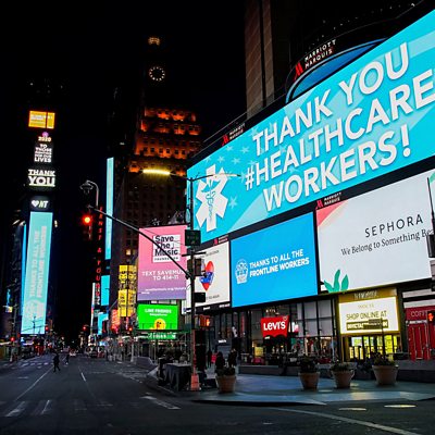 Public health physician Dr Tom Frieden reflects on the ongoing global pandemic. An expert in infectious disease, Dr Frieden is a former director of the US States Centers for Disease Control and Prevention. He was a leading figure in the global response to the Ebola outbreak and he now heads Resolve to Save Lives, an Initiative of Vital Strategies, an organisation dedicated to the prevention of epidemics. From his New York apartment, Dr Frieden provides his unique insight on the unfolding international situation. He records his response to key moments in the development of the pandemic and the measures being taken to face it in the United States, Africa and across the world. As well as analysis, he offers his own personal viewpoint on lockdown life by the Hudson River. Dr Frieden’s home city of New York has become the epicentre of the virus and his recordings give us an individual perspective on the impact of the disease for communities both local and global. Producer: Sam Peach (Photo: Times Square screens are illuminated in blue as part of the "Light It Blue" initiative to honor healthcare workers, during the outbreak of the coronavirus disease. Credit: Eduardo Munoz/ Reuters)