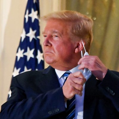 The President of the United States is recovering from Covid-19, after a week when the world watched him leaving hospital briefly in a motorcade to wave supporters and - on his return to the White House - moving his mask on a balcony. Donald Trump then told the country there was nothing to fear from the disease. So how were his words received by the Americans across the country? Nuala McGovern hears from those in California, Iowa and Alabama who were thrilled by the president's show of strength against Covid-19 and from others less enamoured by his attitude. As well as coronavirus, race remains a divisive issue in the US. Nuala returns to Charlottesville, a city scarred by race protests, and brings together a Deacon and a student activist to get their thoughts on race in this election. (Photo: President Donald Trump pulls off his protective face mask as he poses atop the Truman Balcony of the White House Credit: Erin Scott/File Photo/Reuters)
