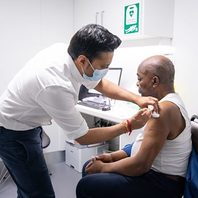 Millions of people across the world are currently being vaccinated against Covid-19. Black, Asian and Latino groups have been the hardest hit by the first wave of the pandemic and yet people within these groups are more reluctant to take up the offer of the coronavirus vaccine. Two doctors in the United States and the United Kingdom counteract the misinformation and share their experiences of patients’ vaccine mistrust with host Nuala McGovern, and a British Imam explains how he promotes the safety of the vaccine among the Muslim community. The pandemic has affected many people in numerous ways and the wearing of masks is causing particular problems among people who stutter or stammer. People from India, the UK and US with speaking difficulties explain how masks are affecting their communication. (Photo: Pharmacist Bhaveen Patel gives a dose of the Oxford / AstraZeneca covid vaccine to Joshua Labor at a coronavirus vaccination clinic held at Junction Pharmacy in Brixton, London. Credit: Dominic Lipinski/PA Wire)