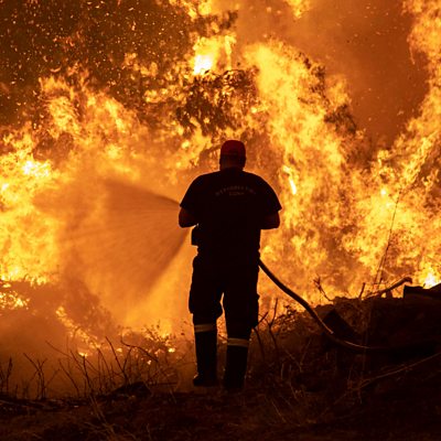 With the UN climate conference in Glasgow drawing to a close, Assignment brings us the final programme in a series telling the stories of three places devastated by extreme weather events. Maria Margaronis travels to the Greek island of Evia, where vast areas of centuries-old forests, olive groves and houses were burned by a week-long inferno. And now come the rains, bringing polluted water and mudslides. Presented by Maria Margaronis and produced by Mark Burman. (Image: A firefighter tries to extinguish a wildfire on the island of Evia, August 2021. Credit: Reuters/Nikolas Economou)