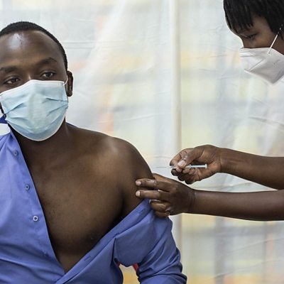 Calls are rising for a waiver of patent protections on Covid-19 vaccines - but would it do anything to accelerate their rollout in the developing world? Manuela Saragosa speaks to an advocate of the "People's Vaccine" campaign, which aims to end the control of the major pharmaceutical companies. Els Torreele of University College London says much of the research and development of these vaccines was publicly funded anyway, and the need to negotiate patent agreements prevents other companies from rapidly scaling up vaccine production. The need to speed up the rollout is testified to by the South African professor of vaccinology Shabir Madhi, who points out that his own country has yet to begin immunising the general public. But Thomas Cueni of the global pharmaceutical industry body, the IFPMA, says they are already on course to vaccinate the world within a year. Producer: Laurence Knight (Picture: A man is vaccinated at a hospital in Nairobi, Kenya; Credit: Robert Bonet/NurPhoto via Getty Images)