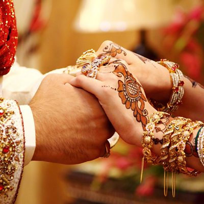 Are the days of the big fat Indian wedding over? Since Covid Indian weddings have got a lot smaller. But will they go back to what they once were? Rahul Tandon speaks to bride to be Yashaswini Singhdeo, mother of the bride Meenal Singhdeo, Sandip Roy author and columnist, Ambika Gupta wedding planner and owner of the A cube project and Parul Bhandari a sociologist from the Indian centre of social sciences and humanities . (Photo: Indian couple hold hands during a wedding ceremony. Credit: Amir Mukhtar/Getty Images)
