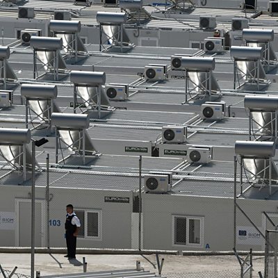 AI, data analytics and automated surveillance are ever more shaping refugees' futures around the world. From the external borders of the EU to the US-Mexico border, "smart border" solutions, developed by private companies for states, are being used to surveil and control people on the move. Lawyer and anthropologist Petra Molnar tells the BBC's Frey Lindsay how she's seen these technologies creep into borders and camps around the world, and Dr Emre Eren Korkmaz of Oxford University describes how this global "border industrial complex" has become hugely profitable for private companies. We'll also hear from a new high-tech refugee camp on the Greek island of Samos, where refugees feel oppressed and dehumanised by the litany of technology that surrounds them. Sae Bosco, of Samos Volunteers, explains that these technologies don't do much to protect people within the camp, despite the EU's claims. And Sarah Chander of European Digital Rights tells Frey that the EU appear aware of the harms algorithmic surveillance and control can bring to people, and so is moving to protect EU citizens, but not migrants. (Picture: the Samos CCAC refugee camp. Picture credit: Getty Images)