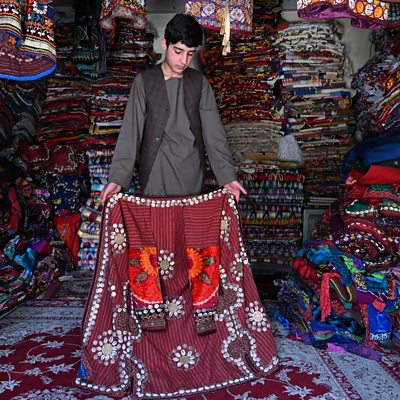 What will the US withdrawal from Afghanistan mean for the economy? The relative security provided by US forces and others over the past 20 years not only helped many grow successful family enterprises but also attracted foreign investors and larger business ventures. Rebecca Kesby speaks to Saad Mohseni, Chief Executive of MOBI, a media company that launched the first private radio station playing pop music in Afghanistan, which had been banned under the Taliban. What does he make of the sudden withdrawal of American troops? Among those with the most to fear are businesswomen. Under the US influence women and girls enjoyed greater freedom, access to education and many built successful companies of their own including Ayeda Shadab who has her own fashion brand. In the past few weeks she has received several death threats just for running her own business. And Iskander Akylbayev, Executive Director of the Kazakhstan Council on International Relations, tells Rebecca that increased instability in Afghanistan may affect the whole regional dynamic. Photo: A vendor displays a traditional outfit at a shop in Koch-e Morgha street in Kabul on June 15, 2021. Credit: Getty Images)