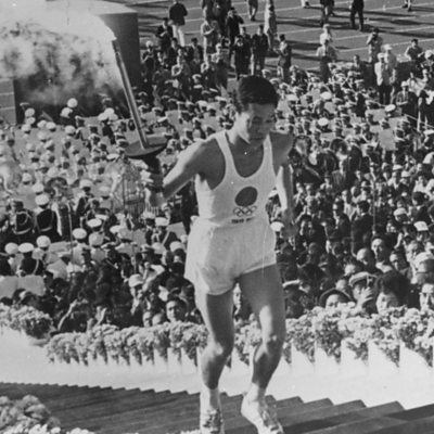 The first Olympic Games in Japan were held in 1964, less than 20 years after the country lost the Second World War. The bombed-out centre of Tokyo had been virtually rebuilt following the Allied Occupation, and the Japanese took the opportunity to showcase new technology such as the Bullet Train and colour TV broadcasts. Ashley Byrne talks to wrestling gold medallist, Yojiro Uetake, about his memories of the games. The programme is a Made In Manchester Production. PHOTO: Japanese student Yoshinori Sakai about to light the Olympic Cauldron in October 1964 (Keystone/Getty Images)