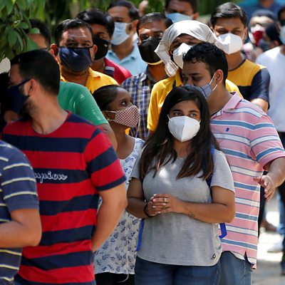 Stories from India, Germany, Afghanistan and France. In India the government’s reputation is being battered by its failure to avoid, and then cope with, a second wave of Covid. The global economic power-house has reversed its stance and accepted emergency humanitarian aid from other countries for the first time in many years. The health service had all but run out of oxygen supplies. Images circulated of people dying as over-stretched hospitals turned them away. All this, after Mr Modi had assured his own people, and the world, that under his governance, Indians had successfully come together to combat the virus. But was the prime minister, instead, more focussed on division? The former BBC India Correspondent, Mark Tully who’s lived and worked in India for much of his life, considers where the current crisis sits within India’s history and Mr Modi’s place in it. After a slow start Germany’s vaccination campaign is now gathering pace. The German government had kept to the time-table of the EU roll-out, rather than going it alone, putting it behind countries like Israel. However, around 30 per cent of the population has now had at least one dose And infection rates are falling steadily. So the German government has agreed to lift some restrictions for vaccinated people. But as the scramble for vaccine appointments intensifies, that is sparking new emotions – and some new words in the German language, as Damien McGuinness in Berlin has been discovering. In Afghanistan, female entrepreneurs have tended to have a tough time getting their business ideas off the ground. They don’t normally get the same support as their male counterparts and only a tiny number of women entrepreneurs succeed in launching their own businesses. However, that number was growing – until the pandemic hit. There’s also nervousness ahead of the US withdrawal of troops from Afghanistan that some sort of power sharing deal between the Taliban and the Afghan government could curtail freedoms which have been hard-won by women. Charlie Faulkner went to meet one determined shop owner in the capital Kabul. Last Wednesday marked 200 years since the death of Napoleon Bonaparte – one of France’s most revered military generals, who eventually met his defeat in the Battle of Waterloo. Opinion was sharply divided as to whether the anniversary should be commemorated or not. He’s hailed by some as a pillar of national history. For others, he was a despot. President Macron went ahead with a largely positive speech saying that his decision to restore slavery six years after it had been abolished, was a “betrayal of the spirit of the enlightenment”. Julia Buckley has visited a small museum in the Dordogne, that sidesteps elements of a life that was, as Mr Macron put it, “an ode to political will power” and focuses on the smaller lesser known aspects of Napoleon. (Image: People queuing to be vaccinated against Covid-19 in Ahmedabad, India, 01 May 2021. Credit: Reuters/Amit Dave)