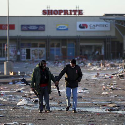 Stories from South Africa, the Netherlands, Brazil and Azerbaijan Shops destroyed, homes ransacked, people killed in the streets: South Africa is recovering from the worst civil unrest for many years. This was triggered by the imprisonment of the country’s former President, Jacob Zuma, in connection with allegations of corruption – indeed, some claim it was his supporters who started it. The British writer, Gregory Mthembu-Salter has lived in South Africa for many years, and has been hearing from extended family and friends who lost out in the violence. With China and parts of Europe hit by severe flooding, there have been more demands for tougher measures to combat climate change. The equation is simple: warmer air holds more moisture, so global heating will mean more severe downpours. This is a particular threat for the Netherlands, where most of the country is below sea level, or only just above it. Anna Holligan has been hearing how Dutch people reacted to this latest sign of an existential threat to their country. There have been more protests in Brazil, whose controversial President is blamed by many for failing to tackle Covid. More than half a million in the country have now died from the disease, but Jair Bolsonaro has dismissed it as no more than “a little flu.” He has opposed many attempts to lock the country down, and is against asking people to wear masks - yet some of those out on the streets are demonstrating in favour of their President. Orla Guerin went to meet them. Sometimes it’s the little things which are a sign of bigger changes. Colin Freeman reported on the war in Nagorno-Karabakh, where he saw particularly fierce fighting in the town of Shusha. On his first trip, it was Armenians in charge, but he returned after troops from Azerbaijan took over. And how could he tell? Well for a start, there was Azerbaijani beer on sale in the local hotel. (Image: A shopping mall, looted following unrest at the jailing of former South African President Jacob Zuma. Credit: Reuters/Siphiwe Sibeko)