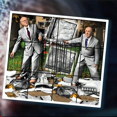 Gilbert Prousch and George Passmore first met as art students in London in the late 1960s and ever since then they have been together as a couple and as an artistic duo. From the beginning their own physical presence has been central to their work and they see themselves as living sculptures. They appear in most of their work, wearing their distinctive tweed jackets and ties. Their subject matter is the stuff of daily life in London, including the stuff other artists would never dream of using including bodily fluids, faeces and trash. Over the decades they have had work exhibited in many of the world's top modern art galleries and have sold works for millions of dollars. Now in London they have presented a collection of lockdown-era work entitled New Normal Pictures but is there anything normal about Gilbert and George? (Photo: Still taken from a Hardtalk interview with Gilbert and George at the White Cube Gallery, showing their painting labelled Bagged 2020, in London, April 2021. Credit: Gilbert and George/BBC)