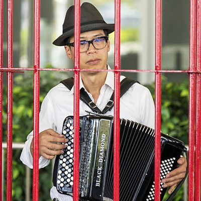 Hong Kong, once a bastion of creative freedom is becoming a city where it is difficult for artists to know what they can and cannot say through their art. Tracy Harris talks to Hong Kong artists who are asking themselves: ‘should I stay or should I go?’. The pro-democracy protests in Hong Kong brought dissenting voices into sharp focus in 2019. They were brought to a halt by the Chinese Government’s introduction of a National Security law, aimed at curbing violent protest. Film-maker Kiwi Chow’s controversial documentary about the protests, Revolution of our Times, was screened at the Cannes Film Festival. Since then, he says his creative freedom has been curtailed, and he is under threat of arrest. Some artists have gone underground and deleted their social media accounts. The protest group who installed a ghostly white statue of a female protester on Hong Kong’s most iconic location, Lion Rock, say they are living in fear of being reported to the authorities and for the time being, have ceased making art. The National Security law does not allow people to criticise the state and most artists and galleries are self-censoring their work whilst some have felt they had to leave. Kacey Wong, whose art satirises those in power, says he could no longer express himself freely in Hong Kong and now makes art in self-imposed exile in Taiwan. A prominent artist who photographed protesters facing police blockades, transformed the images by punching out their faces so they could not be identified. He used ‘a violent act’ to literally deface the pictures, a reflection on the dramatic change to life in Hong Kong. Now he is worried he too may have to leave Hong Kong. Presenter: Tracy Harris Producer: Chris Rushton (Photo: Kacey Wong in a satirical performance-art work, The Patriot, in which he plays the Chinese national anthem imprisoned in a red cage. Credit: Kacey Wong)