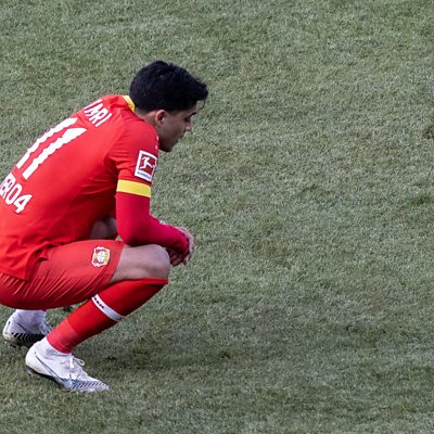 Bayer Leverkusen's director of football Simon Rolfes explains the decision to sack their coach and their plans for the future. Gambia's Assan Ceesay reflects on the historic goal which earned his country a place at the Africa Cup of Nations for the very first time. Picture: Nadiem Amiri of Bayer Leverkusen looks dejected after losing the Bundesliga match against Hertha BSC (Boris Streubel/Getty Images)