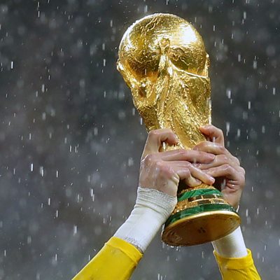 Nigeria's Sunday Oliseh discusses the proposal to have a biennial World Cup. South Africa's new national team coach, Hugo Broos, reflects on the recent World Cup qualifiers. We also hear the tragic story of the former French international Jean-Pierre Adams who died this week after 39 years in a coma. Picture on website: The FIFA World Cup Trophy in the rain after the 2018 final between France and Croatia (Denis Tyrin\TASS via Getty Images)