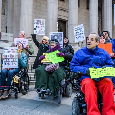 More than a billion people are disabled - that’s 15 percent of the world’s population. With a panel of leading disabled academics, campaigners and politicians, World Questions examines the challenges and opportunities facing disabled people across the globe right now. Presenter: Scout Bassett, US Paralympic athlete Panel: Ambassador Catalina Devandas: Costa Rican ambassador to the United Nations (Geneva) Yetnebersh Nigussie: Ethiopian disability rights campaigner (Kenya) Baroness (Tanni) Grey-Thompson: Former Paralympic athlete (UK) Judy Heumann: Campaigner and former advisor to President Obama (USA) BBC World Questions is a series of international events created in partnership with the British Council. (Image: Disability rights protesters at a rally outside a New York courthouse, Credit: Erik McGregor/Getty Images)